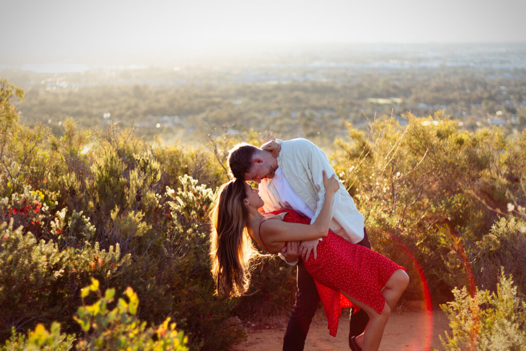 So we picked Lesmurdie Falls in the Perth hills at sunset because I knew that the views & the lighting would help give me half decent photos even if I did a bad job. Meela rocked up this cute little red moment for a dress & despite the fact that the industry trend these days is to go neutral, I just knew in my gut that these photos were going to turn out amazing!
